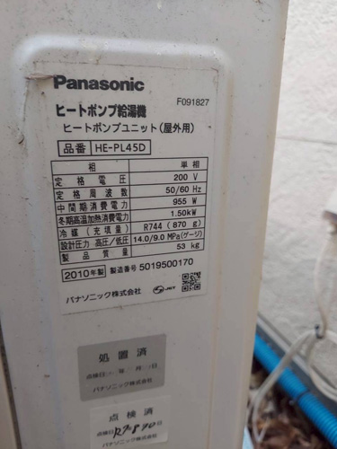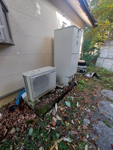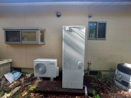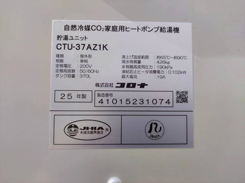橋本市高野口町 パナソニックヒートポンプ給湯機ヒートポンプユニット(屋外用)HE-PL45D→コロナ自然冷媒CO2家庭用ヒートポンプ給湯機ヒートポンプユニットCHP-DZ451K、貯湯ユニットCTU-37AZ1K エコキュート交換工事